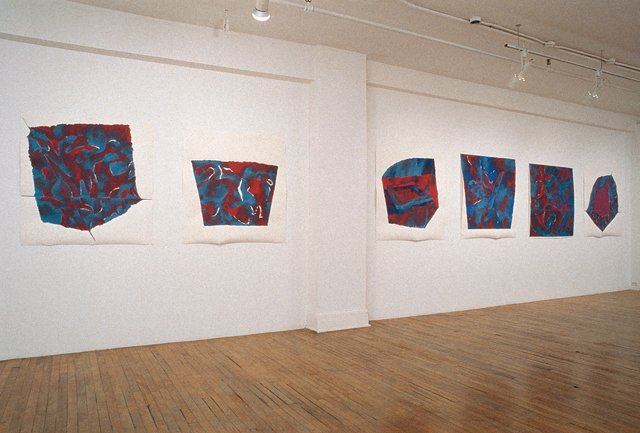 Gouache rouge et turquoise grand format, 1999, gouache sur papier Arches, 110 cm x 110 cm (chacune)